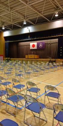 明日の卒業式の会場準備も整い、職員によるリハーサルも行いました。