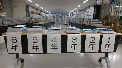 お知らせした「教科書等配布」について、お持ち帰りの目安です。5・6年が少し多くなります。袋をお持ちになる参考になさってください。