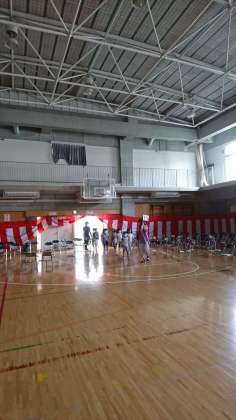 1年生は、教室でのお話の後、下駄箱で靴の置き方を教わったり、傘立ての場所を確認したりしていました。そのまま少しだけ学校の中を探検に出発!土曜日に入学式が行われる体育館も見ることができました。みんなしっかり間隔をとって、よくお話を聞くことができていて感心しました。