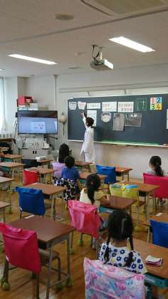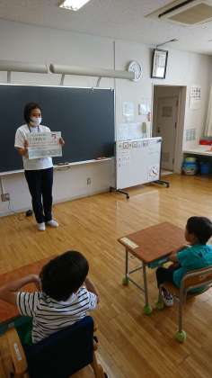 分散登校が始まってから、全クラスで順次、養護教諭による保健指導を実施しています。