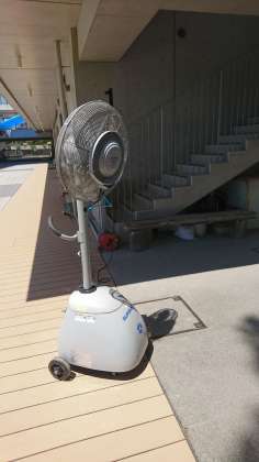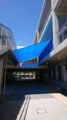今日は北校舎のベランダの手すりから階段にブルーシートを渡して日除けを作ってみました。風や雨のことも考えて、まだ耐久性をチェックしている段階ですが、日除けの下はかなり涼しいです。また、階段下にテントを準備しました。待機できる場所を増やすため、もう少し拡充する予定です。あとは何ができるだろう・・・と、日々考えています・・・夢に出てきそうです・・・いろいろと試しながら進めていきます。良いアイデアがありましたら、ぜひご提案ください!