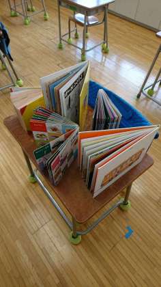 分散登校1週目のくすのき学級の様子です。学習の合間に本を読んでいました。読んだ本は元に戻さずに決められた箱に戻していました。これまでは読んだら元の場所に戻す、が当たり前でしたが、今はこれが正解です!箱に入れられた本は、子供が帰った後に教員がきれいに消毒をしてから本棚に戻します。