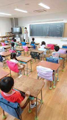 1年生がみんなの前でじょうすに自己紹介をしていました。発表した人に自然に拍手を送る姿もすてきでした。先生に花丸をもらい、花丸がどんどん貯まっていきます。