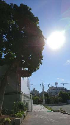 今日も朝から燦々と太陽が照り、気温が上がってきています。熱中症に気を付けて登校してください。アジサイも水をほしがっています。