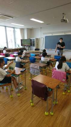 萩原朔太郎の「竹」という詩の学習をしていました。みんなで少し声を押さえて音読していました。繰り返し出てくる「ことば」に注目して、ひびきのよさを味わっていました。