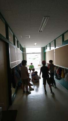 5年生の男子が廊下に集まっていました。どうやら着替えを待っているようです。今週から、身長と体重の測定をしています。そのための着替えです。
