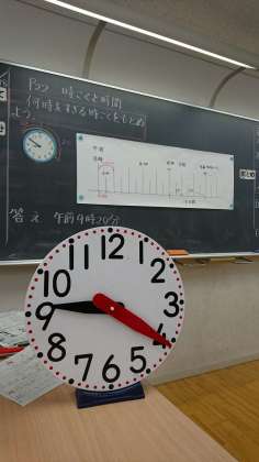 3年生が「時間と時こく」の学習をしていました。時計・時間の学習は生活にも直結する大切な学習です。10時20分の45分後は何時?13時05分の75分前は何時?頭の中で時計の針を動かしたり、数直線で考えたり・・・苦手な子も多いのではないかと思います。でも大丈夫!安心してください。生活の中で使っていく中で、みんなできるようになっていきます。その土台を学習しているんです。生活の中でも意識してどんどん使っていきましょう。