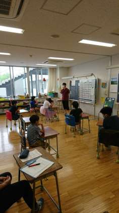 午後のくすのき学級は、全員集まって学習をしていました。全員といっても午後は2学年なので、十分スペースを確保して机を並べられていました。