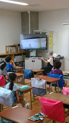今週、1年生への図書室オリエンテーションを各クラスで行いました。司書さんによる読み聞かせもしていただきました。