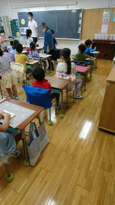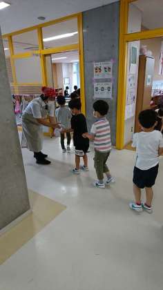 給食準備が進みます。1年生は初めてなので、少し早めに準備開始。まだかな、まだかな・・・