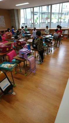 1年生の教室に行くと、担任はまだ下駄箱で子供を迎えていた時だったのですが、着いた子から自分で朝の支度を始めています。立派な姿に感心しました。