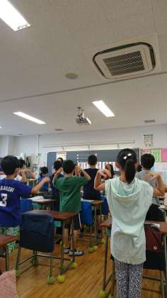 3年生は教室で音楽をしています。ドレミの音階に動きを付けて表現していました。リズムよくできるかな。