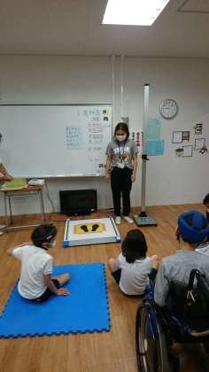 今日は、きはだ学級とくすのき学級が身長と体重の計測日です。きはだ学級は、その後体育館で体育でした。少し歩いたり、走ったりした後はボッチャに取り組みました。体を動かして、気持ち良さそうでした。