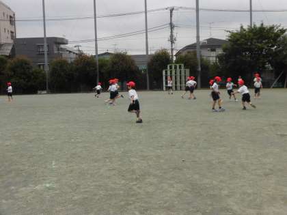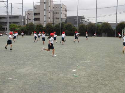 その後、なわとびのいろいろな技に挑戦したり、しっぽ取りをしたりして