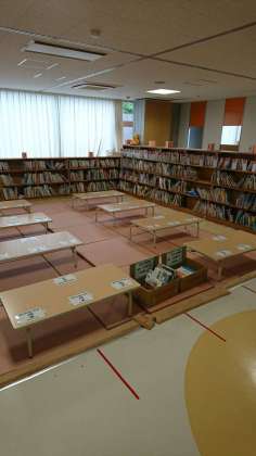 今週から、図書室とふれあいルームは、学級の授業での使用や、学年を分けての休み時間の利用が始まっています。5時間目には、くすのき学級が、1・2年生と3〜6年生に分かれて、ふれあいルームと図書室で図書の時間でした。座席数が限られるため、教室に運んで読む学級もありますが、本を読む機会が増えてうれしいですね。そうそう、手洗いを忘れずに。