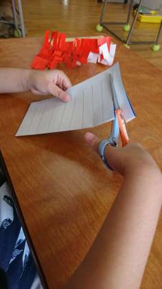 ハサミで切って開いたり、輪飾りを作ったりして、七夕飾りを作っていました。もうそんな時期なんですね。もうすぐ6月が終わります。