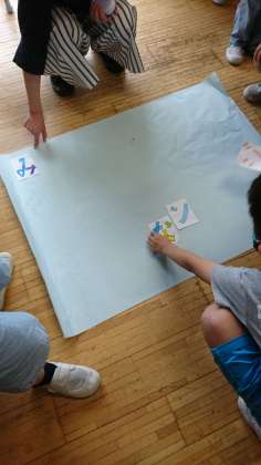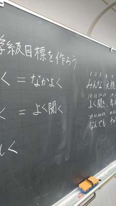 学級会で話合いをして決めた学級目標の掲示物をみんなで作っていました。決めた言葉の中の文字をみんなで分担して作り、一つにまとめていきます。バラバラに作ったものが、合わさって一つのまとまった形になるのはとてもすてきですね。