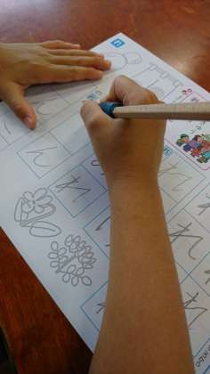 平仮名は、入学後に一文字ずつ丁寧に学習していきます。4つのお部屋をしっかり意識しながら、正しい字形で書けるように、丁寧に、丁寧に練習していきます。「しってるよ。」「できるよ。」という子にとっても、しっかり「学び直し」になるように取り組みます。
