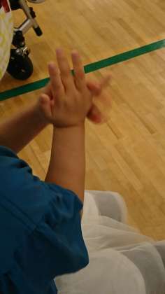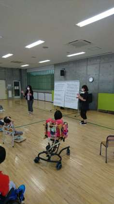 きはだ学級は、全員で小アリーナに集まって音楽の授業です。ミッキーマウス・マーチに合わせて手拍子でリズムをとっていました。軽快なリズムと「うん」という休符で、楽しい演奏会です。この前には、楽器を使った演奏をしていた、とのこと!残念、見たかった、聞きたかった!次回はぜひ聞かせてもらいたい!