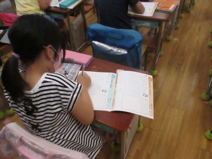 教材と経験を重ね合わせながらたくさんの考えを発表しました。授業の最後では、人によって違う態度をとらないためにどのような考えが大切なのか自分と向き合いながらノートにまとめました。