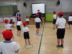 今日は残念ながら天気に恵まれなかったため、小アリーナで体育をしました。