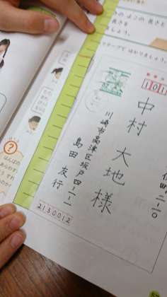 初めに、はがきの長さを測っていました。1センチメートルきざみの目盛りがついたものさしで測ると、横が10センチメートルぴったり!縦は・・・15センチ・・・メートル・・・くらい?うまく測れません。さて、どうしよう。