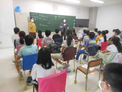 7/8 4年 外国語活動 公開日 2020/07/08 更新日 2020/07/22 できごと 4年生の外国語活動の学習の様子です。前に出て英語で自己紹介をし、自分の好きな食べ物をジェスチャーで表して、皆に当ててもらいました。英語の指示にも、少しずつ反応が良くなってきているようです。 いいね(0)