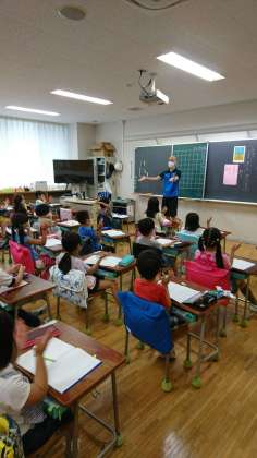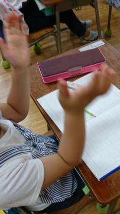 1年生が国語で「っ」(小さい「つ」)の学習をしていました。「ねこ」と「ねっこ」を例に練習していきます。手拍子を使って2つの違いを学んでいました。