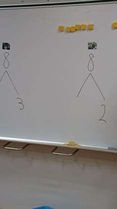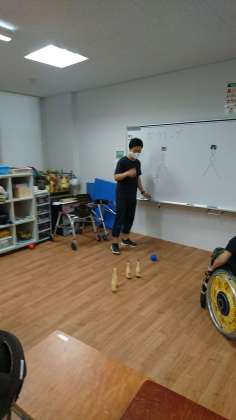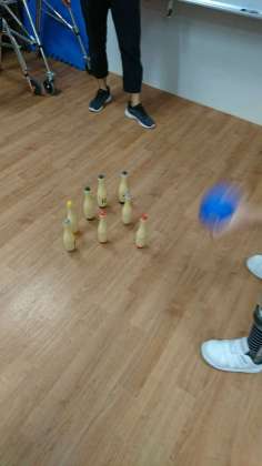 ボーリングを使って、倒した数と残りの数を「さくらんぼ」を使って学習していました。