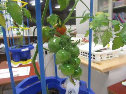 毎日水やりをして育てているミニトマトの実が実り、各自収穫が始まりました。