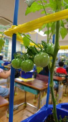 雨が多いですが、2年生のトマトは順調に育ち、もう実を付け、収穫できるものも出てきているようです。実の収穫は、植物を育てる楽しみの1つですね。