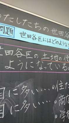 3年生の社会科の学習です。世田谷区の学習が続いています。今日は、世田谷区の土地の使われ方を調べて白地図にまとめていました。