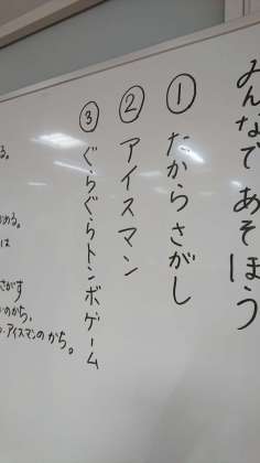 今日は、みんなで学級会で決めた遊びをするレクリエーションの時間がありました。遊びの説明を聞いてから実際にやってみます。低学年と高学年に分かれて楽しく活動することができました。