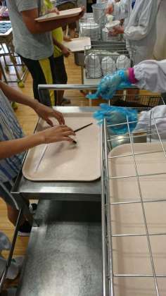 今日もおいしい給食です。子供たちも給食当番の流れに慣れ、準備もスムーズになってきました。