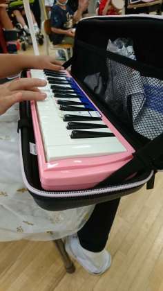 色々な楽器を使って、皆で「ミッキーマウス・マーチ」の演奏です。今日は、出だしの部分を練習していました。出だしの部分の演奏、ばっちりそろっていました!