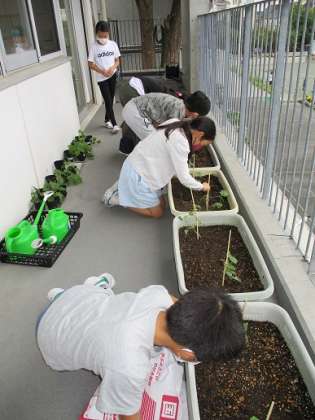 また、生き物の世話が大好きな子供たち。ベランダに植えたヘチマをいつも気にかけています。今日はプランターに生えた雑草が気になって、みんなで抜いてくれました。心優しい子供たちです。