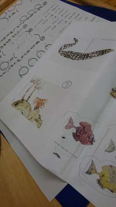 ところで、この「うなぎ」、見た感じは「ウツボ」に見えます。訳者の谷川俊太郎さんがあえてそうしたのかも、と思って調べてみると、原作でもやはり「ウナギ」を表す語になっているそうです。国によっての認識の違いなどもあるかもしれません。あるいは、レオ=レオニさんには何か考えがあったのかも・・・色々と想像が広がります。