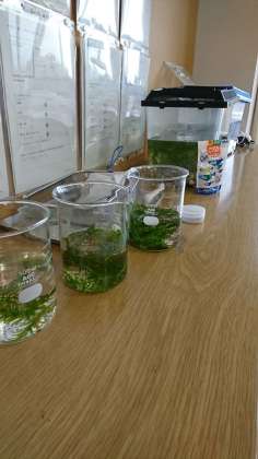 5年生は日本の地理の学習をしています。その学習を見に行ったのですが、後ろに置いてあるメダカの水槽のとなりのビーカーに、メダカの子供たちがいるのを見付けてしまいました!そちらを紹介します。