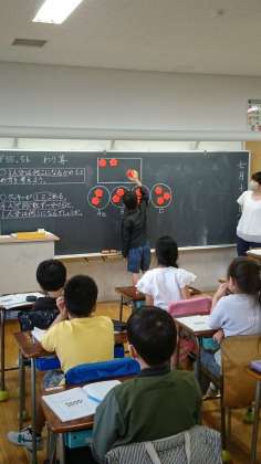 1人に3個ずつ渡していく考えが出ました。1人目、2人目、3人目・・・足りるかな・・・足りた!ぴったりでした。よかった、最後の子はドキドキしたかもしれません。
