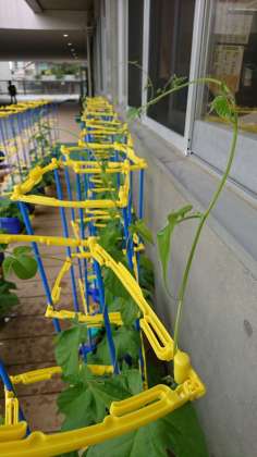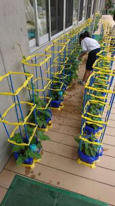 1年生があさがおの水やりをしていました。つるが大きく伸びて、上から飛び出しているものも!気温が上がればさらに伸びていくでしょう。楽しみですね。
