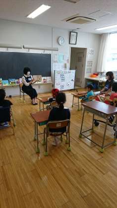 自分で本を選んで読みます。途中、司書さんが、読み聞かせに来てくれました。3つの教室に分かれているので、順番に回ってもらいます。まだかな、まだかな。