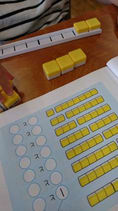 1年生は、算数ブロックを使って数字の学習をしています。1つずつブロックを動かして確かめながら、しっかり数を数えています。