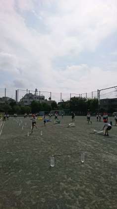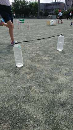 校庭では、4年生がハードル走の練習をしています。ミニハードルや、コーンを倒したもの、ゴムヒモなど、まずは安全にできるもので練習をしていました。これで歩幅を合わせる練習や、スピードを落とさず走る練習をします。