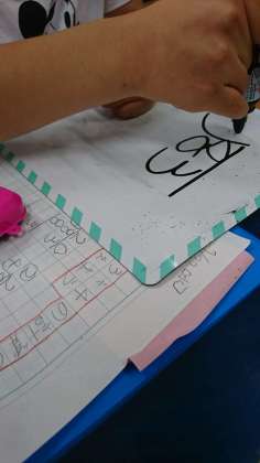 わり算の筆算に取り組んでいるグループでは、最後の答えは一緒になっているけど、途中の書き方が違いがあり、それについて考えていました。どちらも合っています。皆で考えていき、より簡単にするための方法が分かりました。でもどちらの考え方も大切です。友達の考えの意図を考えていくと、より深く学ぶことができますね。