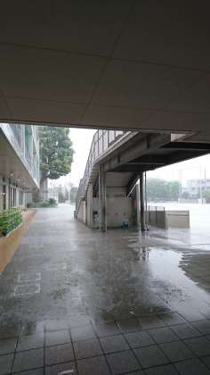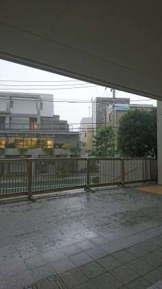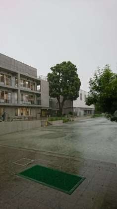 雨が強く降ると、松沢小学校の校庭は、写真の通り、水に浸かります。4年生が、窓からその様子を見ていました。先日まで、理科で雨水の流れ方について学習をしていたので、実際に見ていたのでしょう。