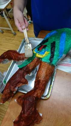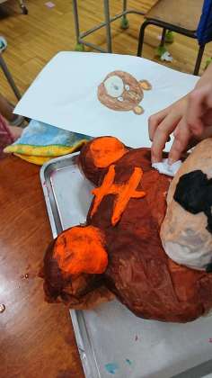 2年生の図工「かぶって へんしん!」、他のクラスでも作業が進んでいます。イメージ通りに作れたんだなあという作品、どうやって土台を作ったんだろうと感心してしまう作品、いろいろな作品ができてきました。見ているだけでおもしろいです。でも、これは「かぶって へんしん!」ですから、ここからが本番ですね。乾かして土台にしたカップなどを取り出していくのでしょう。。