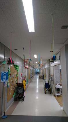 きはだ学級の教室や廊下に、図工で作った作品が吊るされていてきれいです。
