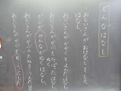 「おおきなかぶ」で、お話の内容を自分の言葉で説明する学習活動をしました。