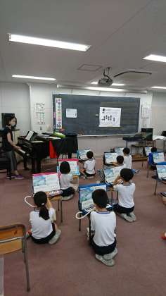 2年生では、音楽で鍵盤ハーモニカの学習が始まりました。感染予防に気を付けながら、練習をしていきます。