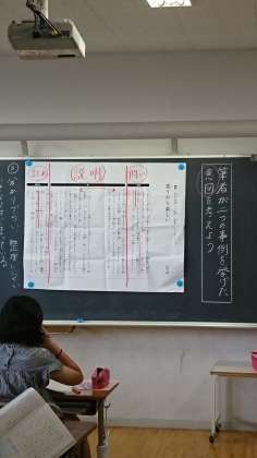 6年生の説明文の学習です。「笑うから楽しい」という短い教材で今回学ぶ内容を確認して、「時計の時間と心の時間」という教材に入ります。先日、4年生の記事で紹介した形です。